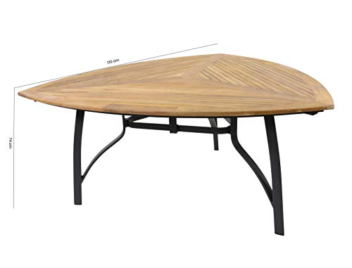 Dieser Gartentisch wird dank des dreieckigen Design und der tollen Materialien aufgebraucht Blicke auf sich ziehen. Es ist die moderne Kombination herkömmlich bewährter Materialien, die den Tisch wunderbar zur Geltung bringt. Das Gestell ist alle Alu, wodurch der Tisch witterungsbeständig ist. Zusammen mit der Tischplatte alle Teakholz erzielt der Tisch eine unverkennbare Wirkung. Teakholz zählt zu den ältesten und wertvollsten Hölzern Asiens und besitzt großartige Eigenschaften. Trotz seines geringen Gewichts weist das Holz in den Punkten Härte, Festigkeit und Resistenz eine großartige Qualität auf.