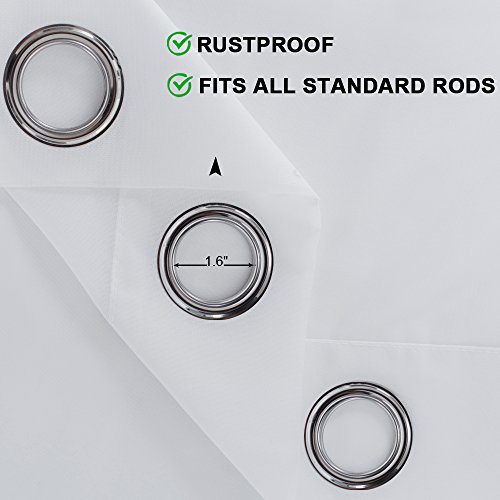 8 Ösen (4,1 cm Innendurchmesser) oben auf jedem Paneel vermindern das Aufhängen und passen auf die meisten Standardstangen. Rostfreie Ösen sind auch ideal für den Außenbereich und schützen den durchsichtigen Vorhang vor Flecken.
