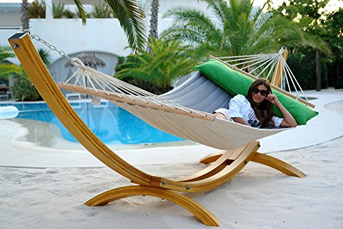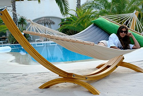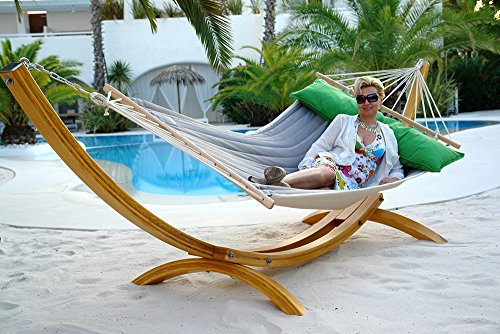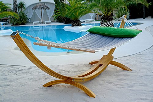 Hängematte Canada , gefüttert, mit Kissen Die neue Lola-Canada, hergestellt nach dem Vorbild des großen Bruders -Lola American Hammock-, bietet Ihnen die einzigartige Entspannung für höchste Ansprüche. Minimalistisch designt und enorm weich ist die Stabhängematte gefüttert und gesteppt und zudem ausgestattet mit einem verstellbarem Durchschrift Kopfkissen. Sie ist an Bequemlichkeit nicht oft zu übertreffen. Das ist die erste Hängematte für eine Person, welche sich unter die luxuriösen Hängematten eingemischt hat. Damit ist die Lola-Canada super adaptiv einsetzbar und passt überall hin. Unser Versprechen ist: Einmal Lola-Canada probiert – Absolut nie noch einmal auf Lola-Canada verzichtet! 2-Sided: Unsere Lola-Canada ist beidseitig verwendet werden: Wahlweise mit der Vorderseite im Steingrau-Grün oder der Abseite in Natur-Weiß. Das Kissen und der Kissenbezug sind abnehmbar und leicht zu reinigen. Durch die verflochtenen Zöpfe am Beendigung des Tuches bietet die Hängematte eine hohe Belastbarkeit und lange Lebensdauer, wie es sich für eine Lola-Hängematte jeglicher der Kategorie der edlen Luxusmodelle gehört. Erhältlich aka in den weiteren zwei Farbkombinationen markanter und moderner Farb-Duette. Technische Daten: – Farbe: grau-grün – Tuchfläche: 200 x 120 cm – Stabbreite: 120 cm – Gesamtlänge: 330 cm – Material: 100% Baumwolle, gesteppt und gefüttert, – Kissen (grün) mit Bezug (waschbar und herausnehmbar) – Belastbarkeit bis 220 kg