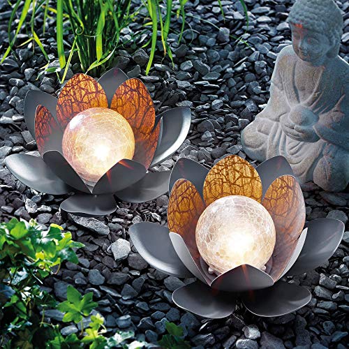 【Cooles buntes Licht】Unser Sun Lotus kombiniert den robusten grauen Metallkranz mit dem Glanz und der Eleganz der echten Glaskristallkugel im Inneren. Nach Einbruch der Dunkelheit leuchtet der Lotus unterhalb dem warmweißen Licht und bringt Ihren Garten zum Leuchten. Das Erscheinungsbild von Glasscherben trägt zum Lichteffekt bei und kombiniert unzählige Reflexionen zu einem romantischen Lichteffekt. Perfekt statt Garten, Pool und Teich Dekoration.