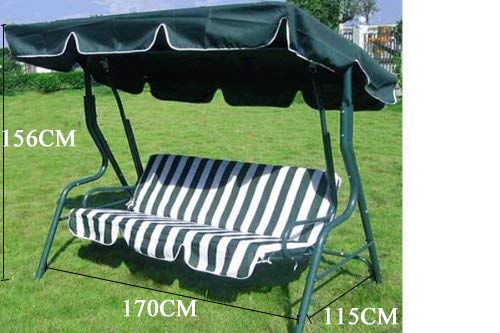 Loywe Hollywoodschaukel Gartenschaukel Schaukelbank 3-Sitzer mit Dach Stahlgestell,Grün 170x115x156cm LW12