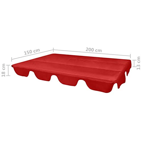 Farbe: Rot Material: 100% Polyester mit Hilfe von wasserdichter PVC-Beschichtung Gesamtgröße: 226 x 186 cm (L x B) Größe ohne Volants (Flachdach): 200 x 150 cm (L x B) Vordere und hintere Volantbreite: 18 cm Seitenschürzenbreite: 13 cm Universeller Ersatzdach anstelle nicht mehr da Schaukeln mit Hilfe von einer Breite von 110-145 cm bis zu einer Länge von 170-200 cm Befestigt dank 2 Tunnelschlaufen an beiden Längsseiten Material: Polyester: 100%