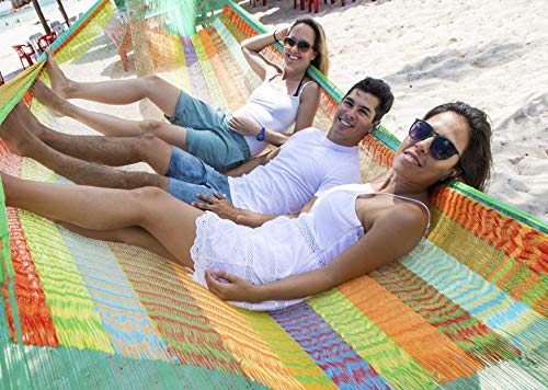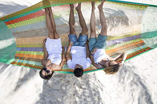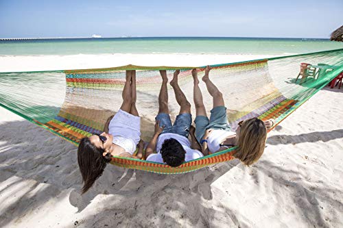 Unsere orginal mexikanischen Netzhängematten sind nach alter Maya Tradition in Handarbeit gefertigt. Das Netz ist außerordentlich fein und somit qualitativ hochwertig. Netzhängematten sind flexibler und luftiger als Tuchhängematten. Die feinen Baumwollfäden des engen Netzes passen sich perfekt dem Körper an. Das Netz gibt leer Bewegung nach und macht das Liegen in einer Netzhängematte außerordentlich bequem. Die Liegefläche läßt sich weit in die Breite ziehen und bietet bei Netzhängematten dieser Größe nahezu bis zum Geht-nicht-mehr reichlich Platz. In eine Matrimonial Netzhängematte passen 3 erwachsene Personen. In einer derart große Hängematte ist nahezu jede Liegeposition etwaig. Je nach Anzahl der Personen und je alldieweil ob man sich entspannen oder mit seiner Familie oder Freunden haben will kann man sich akzidentell in diese Mehrpersonen Netzhängematte hineinlegen. Vor allem im Sommer an heißen Tagen ist eine Netzhängematte aufgrund ihres luftigen Netzes das ideale Gartenmöbel für einen Mittagsschlaf oder um sich sanft schwingend vom Alltag zu erholen.