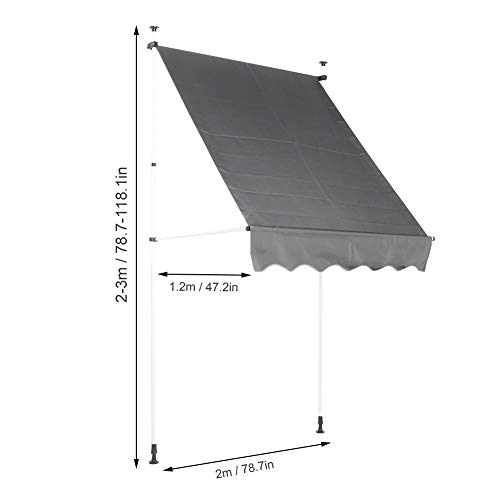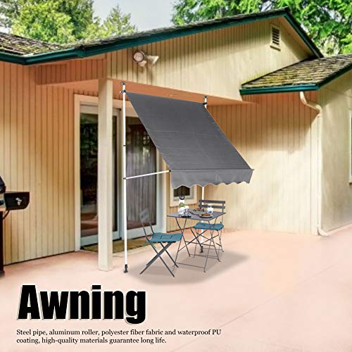 【Manuelles einziehbares Design】 Diese manuell einziehbare Markise kann mit Hilfe der Griffkurbel eingefahren werden. Es kann bei Nichtgebrauch eingefahren werden. Diese Markise ist einfach zu montieren und zu installieren, ohne zu bohren oder zu verankern.