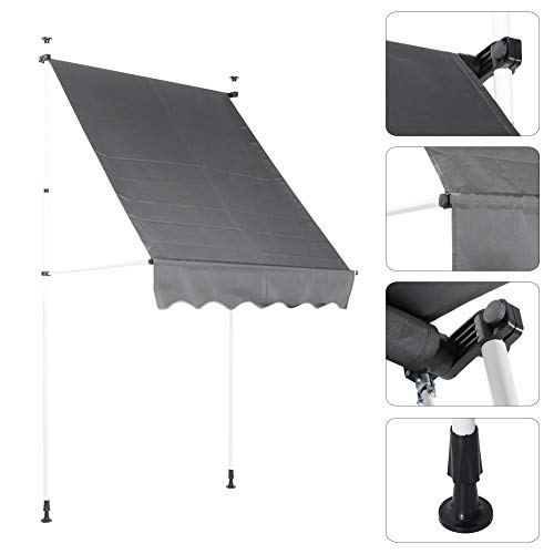 【Höhenverstellbares Design】 Die Höhe der Markise der Gartenfenstertür kann eingestellt werden. Das Rohr ist mit 10 Löchern und verstellbaren Füßen ausgestattet und die Höhe der Balkonmarkise kann zwischen 2 und 3 Metern eingestellt werden.