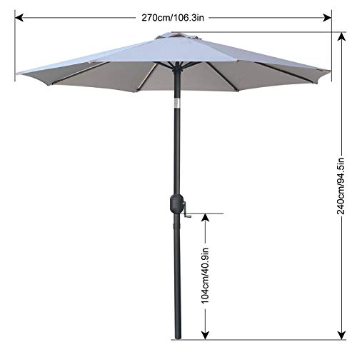 MASTERCANOPY 270 cm Sonnenschirm Patioschirm Gartenschirm Terrassenschirm Tischschirm Martkschirm 8 Rippen, Grau