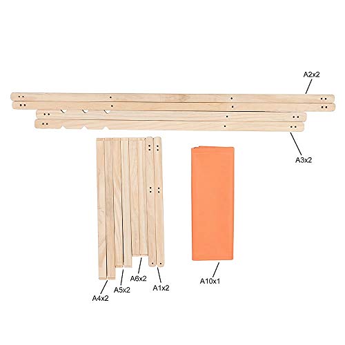 MATERIAL – Der Liegestuhl ist die Gesamtheit stabilem Kiefernholz gefertigt und mit einem Polyesterbezug bezogen. Das Material ist besonders abgehoben und langlebig.