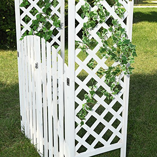EXTRA BREIT MIT TÜR – Durch den extra breiten Durchgang (100cm) sowie den beiden Flügeltüren aus Holz lädt das Spalier förmlich dazu ein Ihren Garten zu betreten. Die Tür ist mit rostfreien Edelstahl-Scharnieren befestigt und kann auf Wunsch durch den Bügelverschluss auch leicht verschlossen werden.