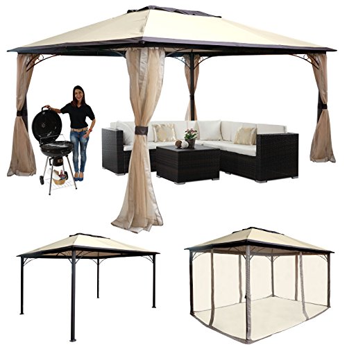 Mendler Pergola HWC-C44, Garten Pavillon, stabiles 7cm Alu-Gestell mit Moskitonetz, 4x3m