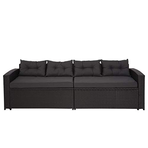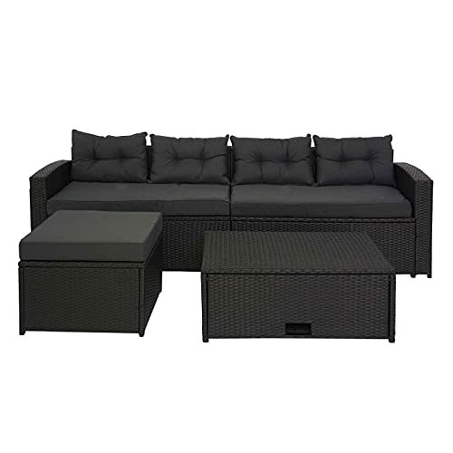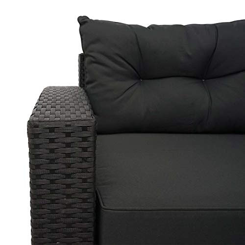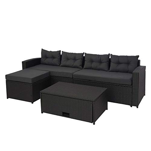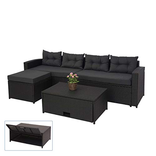 Mendler Poly-Rattan Garnitur HWC-J34, Balkon-/Garten-/Lounge-Set Sitzgruppe Sofa, Staufach – schwarz, Kissen dunkelgrau