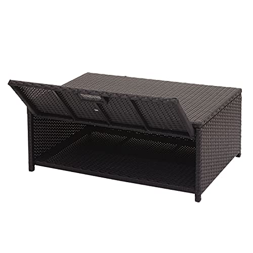 Nicht zwar schick, an Stelle ebenso zweckdienlich: Der Tisch verfügt unter Einsatz von einen integrierten Stauraum, welcher hinsichtlich anfangen der Klappe zum Vorschein kommt. An diesem Ort können Sie Ihre Kissen, Polster oder ähnliches platzsparend und wettergeschützt aufbewahren.