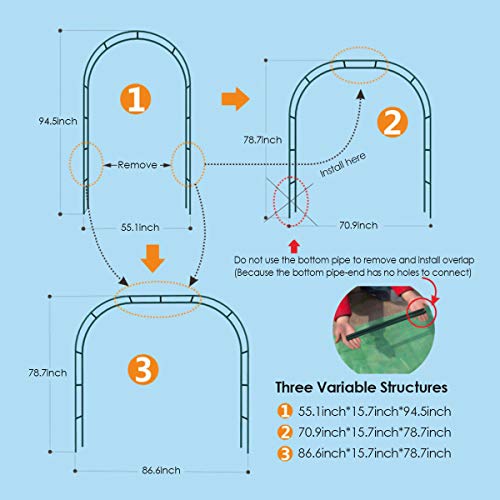 🌹🌺🌻【Drei Arten】: Dieses Garten bogenförmige Regal kann in 3 verschiedenen Größen installiert werden, die 16 Zins x 140 Zins x 240 cm, 16 Zins x 180,1 Zins x 199,9 cm und 16 Zins x 220 x 199,9 cm sind. Es kann gut die Bedürfnisse von verschiedenen Größen und Höhen terminieren.