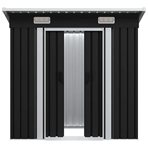 Dieser Gartenschuppen ist perfekt für die Lagerung einer Vielfältigkeit von Werkzeugen und Geräten. Dieser Gartenschuppen hat 2 Lüftungsöffnungen an der Vorderseite, die für eine hervorragende Luftzirkulation sorgen. Die Durchschlag-Schiebetüren an der Vorderseite erlauben ein bequemes Ein- und Herstammen. Dank der verzinkten Stahlkonstruktion mit zusätzlicher Zinkbeschichtung ist der Geräteschuppen langlebig, zäh und robust, so dass Rost und extreme Witterungsbedingungen ihm nichts anhaben können. Ein Stahlrahmen für den Boden trägt ebenfalls zur Haltbarkeit bei und bildet die Basis für einen Holzboden (Holz nicht im Lieferumfang enthalten). Die fertig zugeschnittenen, vorgebohrten Teile und die mitgelieferte Aufbauanleitung garantieren eine einfache und schnelle Montage.
