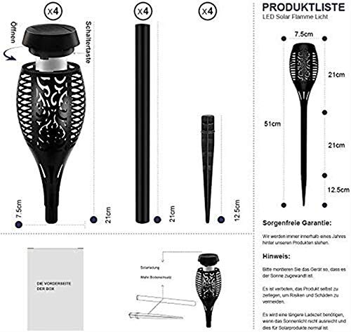 【UMWELTFREUNDLICH UND ENERGIESPAREND UND EINFACH ZU INSTALLIEREN】 Diese Gartenlampe ist solarbetrieben, keine Verkabelung erforderlich, kein Strom erforderlich. Setzen Sie einfach das solare Flammenlicht in Ihren Rasen, Blumentopf oder sogar in den Sonnenschirm.
