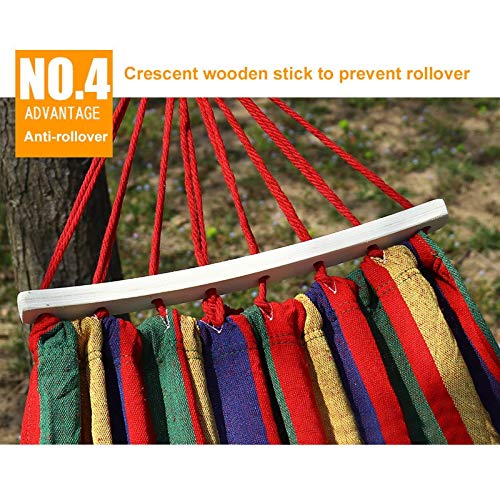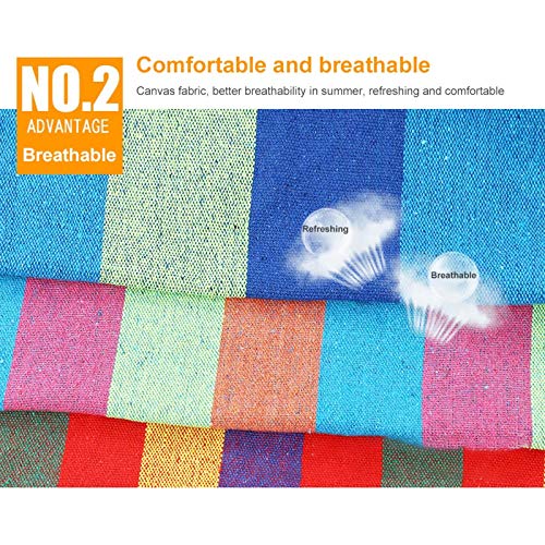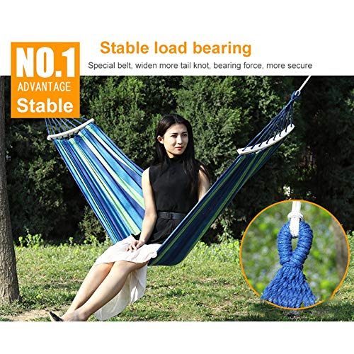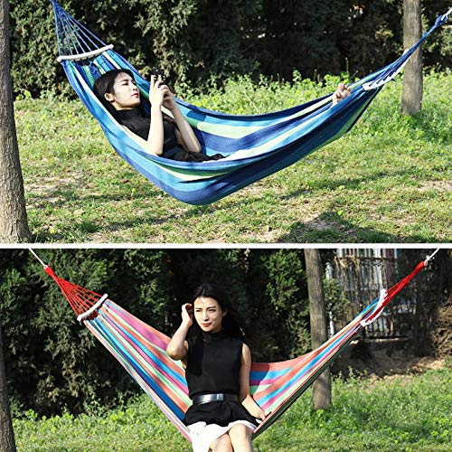 Bequemer und strapazierfähiger Canvas-Stoff: dicker, umweltschonender Canvas-Stoff, keine Flusen, kein Verblassen, kein eigenartiger Geruch, kein Ball. Die Hängematte ist langlebig, bequem, hautfreundlich und atmungsaktiv. Hochfeste Tragfähigkeit ist nicht leicht zu brechen