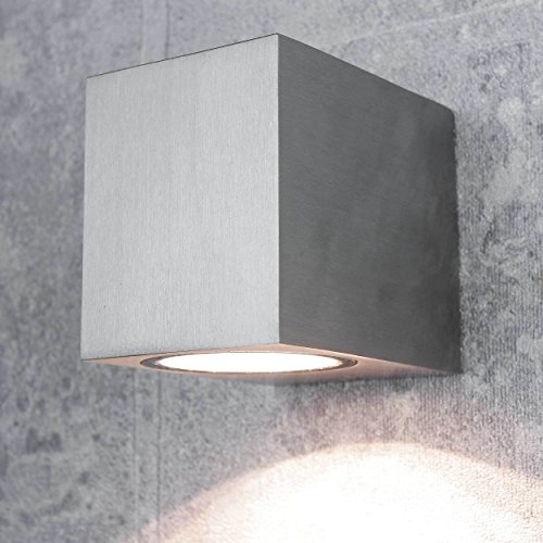 Setzen Sie Akzente: Auffällig und trotzdem dezent! Unsere „Aalborg“ ist klein in der Größe, gleichwohl wahnsinnig in der Wirkung. Die moderne Außenwandlampe ist dank wetterfestem Material ideal für den Außenbereich geeignet. Das Licht strahlt dabei nach runter, sodass eine breite Lichtstreuung für Ihr Grundstück erreicht werden kann. Durch die kompakte Größe kann die Lampe auch an schmäleren Hauswänden ideal angebracht werden – Mehr Sicherheit für Ihr Zuhause! Neben herkömmlichen GU10 Leuchtmitteln können selbstverständlich auch normale LEDs eingesetzt werden. Die Rangfolge „Aalborg“ bietet eine große Auswahl an eckigen und halbrunden Abhalten in den Farben antik, silber und schwarz.