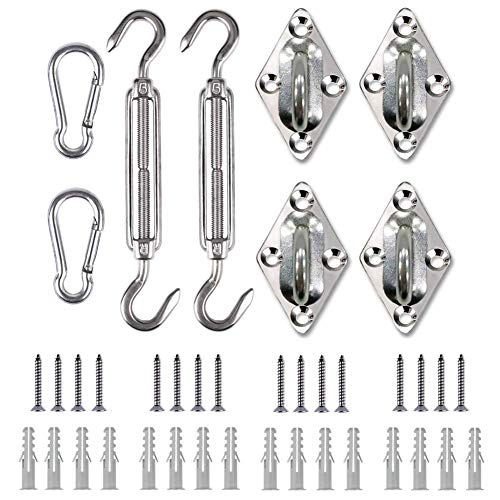 ♦ Jede Ecke des Sonnensegels hat einen haltbaren D-Ring alle Edelstahl 304. Wir verwenden unsere Edelstahlbeschläge, um das Segel zu abstützen, das winddicht und nicht leicht zu abfallen ist.