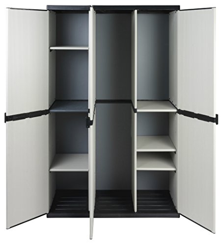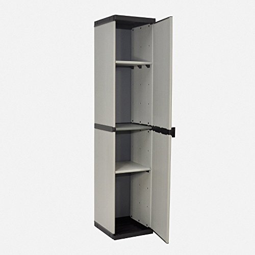 Lieferumfang: 1 x Kunststoff Spindschrank mit Freifach und drei schmalen Böden | 1 x Nischenschrank in hoher Erfüllung mit 3 schmalen Böden, zwei davon höhenverstellbar | In Kombination: Multifunktionsschrank mit 3 Türen und optimalem Stauraum für unterschiedliche Bedarfe!
