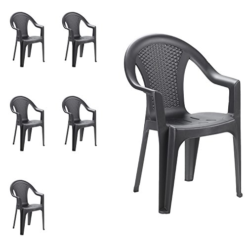 6 Stückchen Kunststoff Stapelstuhl Ischia Rattan-Optik in Anthrazit