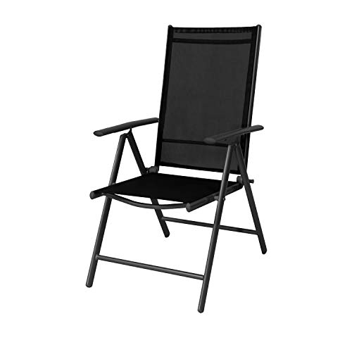 PRAKTISCH ZUM LAGERN. 7-Positionsstuhl mit Textilenbespannung (Schwarz/Schwarz) platzsparend klappbar.