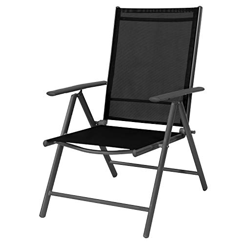 PRAKTISCH ZUM LAGERN. 7-Positionsstuhl mit Textilenbespannung (schwarz) platzsparend klappbar.