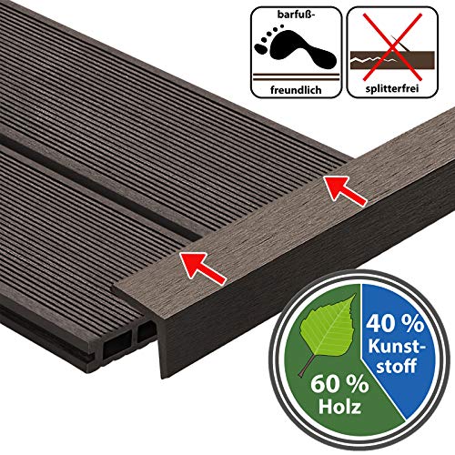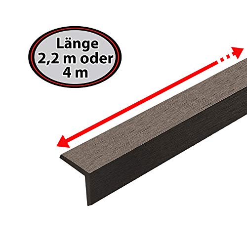 Montafox 5 Stück WPC Abschlussleisten Abdeckleiste Terrassendielen Dielen L-Leiste 190 cm oder 220 cm, Länge:2.2m, Farbe…