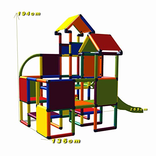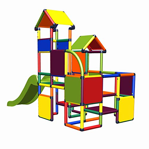 Mit den zwei vielfältig hohen Türmen und den vielen Gängen und Abstufen können Kinder in dieser farbenfrohen Spielburg so massenweise entdecken. Hier können sich die Kleinen wie Ritter und Burgfräulein fühlen und ihrer Phantasie freien Lauf lassen. Die Rutsche hat eine Podesthöhe von 85 cm und bietet die Gelegenheit für eine rasante Rutschpartie.