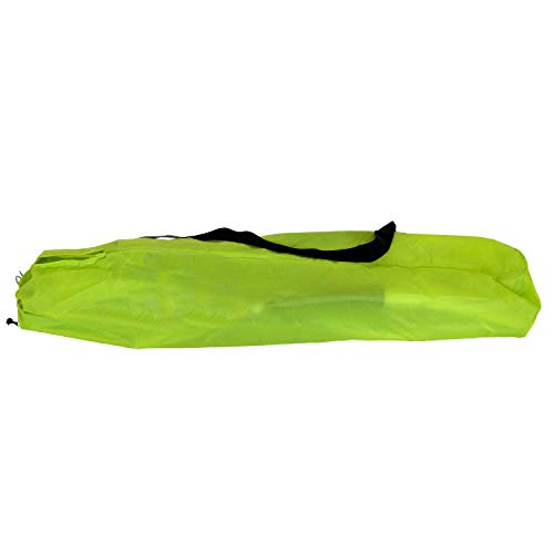 Der faltbare Strandstuhl ist mit einer Transporttasche inklusive Tragegriff ausgestattet. Die Sitz- und Rückenfläche besteht allesamt einem pflegeleichten, strapazierfähigen Polyestergewebe in der Farbe Grün. Zusätzlich sind die beiden Armlehnen mit schwarzen Schaumstoff gepolstert. Zwei Sicherungen umgehen, dass das weiß beschichtete Stahlgestell ungewollt zusammenklappt.