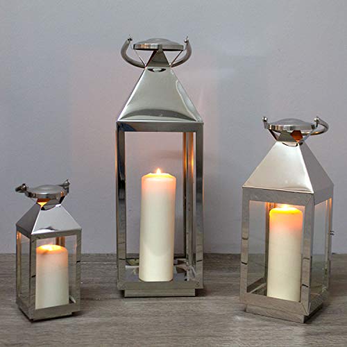 Das Highlight an diesen laternenförmigen Windlichter sind die glänzenden, verspiegelten Edelstahlflächen, die Kerzenlichter perfekt zur Geltung bringen. Die Windlichter können nicht dessen ungeachtet aufgestellt