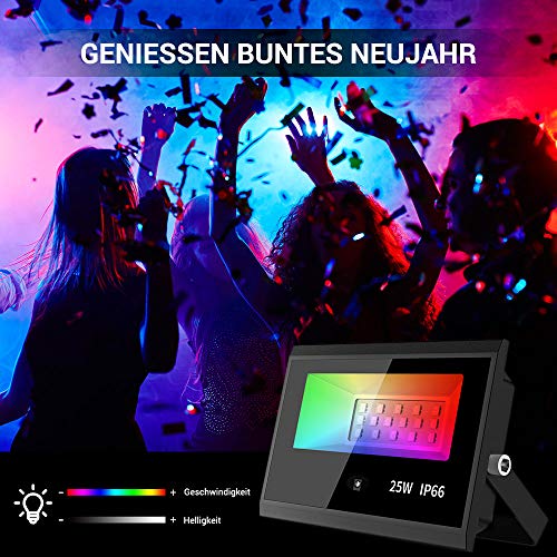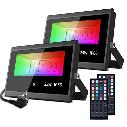 MustWin RGB Strahler 25W LED Strahler 2er mit Fernbedienung IP66 Wasserdicht Fluter Farbwechsel Dimmbar Außenstrahler…