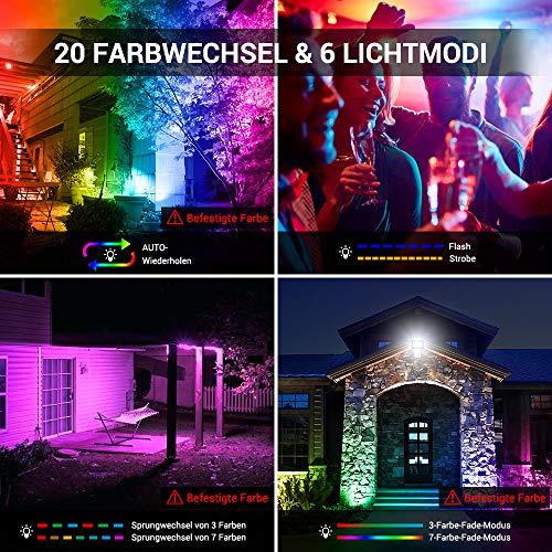 🎨【20 FARBWECHSEL & 6 DYNAMISCHE MODI & DIY-FARBEN AUFSTELLEN】-MustWin RGB LED Strahler besteht aus RGB-LEDs. Dieser LED Fluter verfügt über 20 Farben und 6 Modi: AUTO-Wiederholen, Flash & Strobe, Sprungwechsel von eingerichteten 3 und 7-Farben, eingerichteten 3 und 7 Farbe-Fade-Modus. Auch können 3 DIY-Farben aus einer Vielfältigkeit von Farben durch Erhöhen oder Verkleinern des Verhältnisses von Rot, Grün und Blau einstellbar. Sie können z.B. RGB LED Strahler beim Party verwenden.