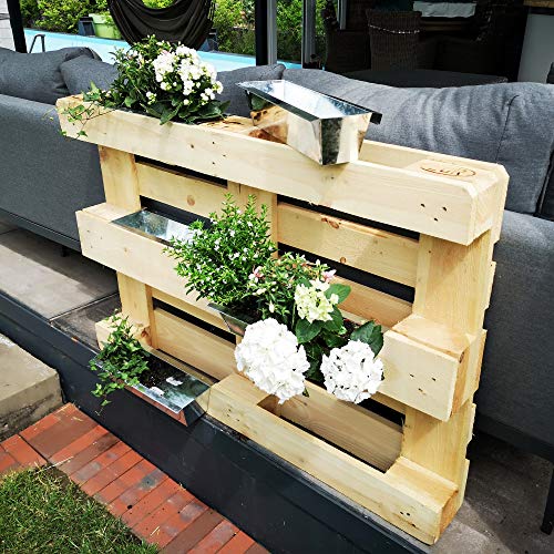 Europaletten Möbel für den Garten sind total angesagt, langlebig und praktisch. Erweitern Sie mit diesem Pflanz- Einsatz für Europaletten Ihr Garten oder Balkon Mobiliar um einen nützlichen Pflanzkasten. Mit diesem robusten und langlebigen Zinkkasten verdoppeln Sie Ihren Platz für Pflanzen. Nicht zugegeben im Garten oder auf der Terrasse, sondern auch als Balkonkasten macht unser Pflanzgefäß eine gute Figur.