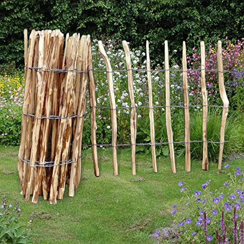 Es können einige Abweichungen auftreten, da es sich hier um natürlich gewachsene Haselnussruten handelt. Das Holz benötigt vor dem Anbringen keine weitere Behandlung, der Rollzaun kann sofort aufgebaut werden! Die Zaunlatten sind mit dickem doppeltem Draht umwickelt, sodass die Latten nicht herausrutschen können. So können Sie alias ohne Probleme den Zaun in der Länge kürzer machen oder zwei Elemente miteinander verbinden – einfach den Draht loshaken und miteinander verknoten!