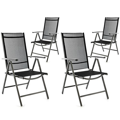 4 leichte Leichtmetall-Klappstühle im modernen Design, die sich platzsparend verstauen lassen