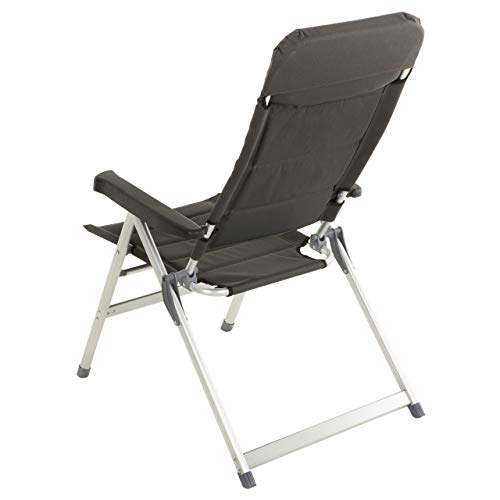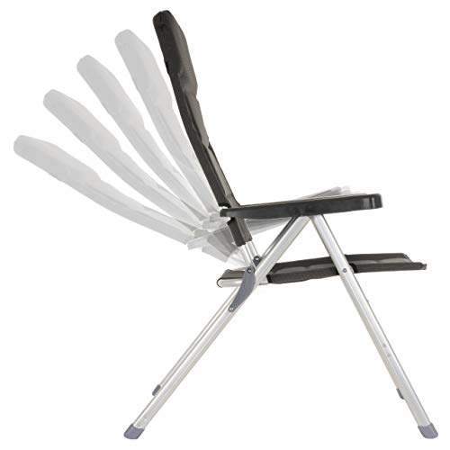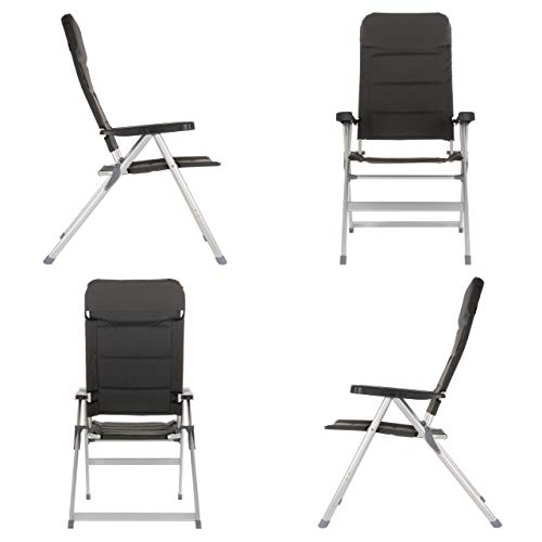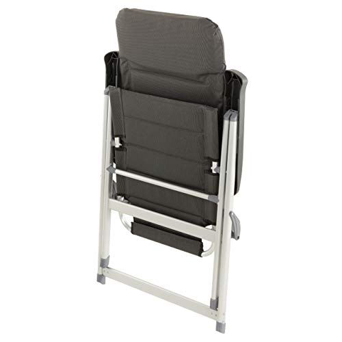 Der Stuhlrahmen besteht aus hellgrau lackiertem Aluminium und einer gepolsterten Kunststoff-Bespannung aus schwarzem 600D Polyester – doppelte Schicht. Somit ist der Gartenstuhl extra großartig gepolstert, was erheblich zum bequemen Haftstrafe verbüßen beiträgt. Das Kopfstück der Lehne ist besonders dick ausgepolstert, so dass es für den Kopf als bequemes Kissen dienen kann. Auch die Armlehnen sind extra breit gefertigt, damit die Armunterseiten eine optimale Ablegen haben.