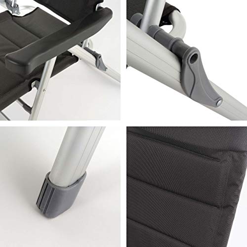 Material / Farbe: Aluminium mit Pulverbeschichtung grau / Bespannung: 600D Polyester Doppelschicht, gepolstert, schwarz
