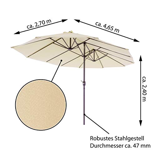 Nexos Trading Doppelsonnenschirm XXL Sonnenschirm Creme mit Kurbel Oval Spannweite 4,65m Polyester 180g/m² Terrasse Marktschirm Riesenschirm Garten-Schirm