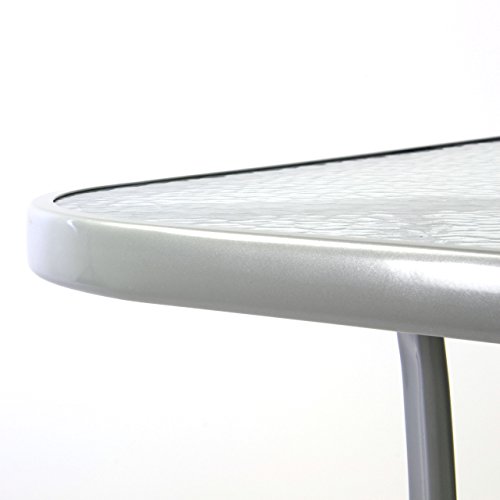 Der Glastisch ist eckig / rechteckig, sehr belastbar, pflegeleicht und hat eine Platte aus stabilem, klarem Glas. Außerdem wurde in die Platte aus Sicherheitsglas ein Schirmloch eingearbeitet. So können Sie bei Bedarf auch angenehm im Schatten Haftstrafe verbüßen. Das Gestell mit den gerundeten Beinen ist optisch besonders ansprechend.