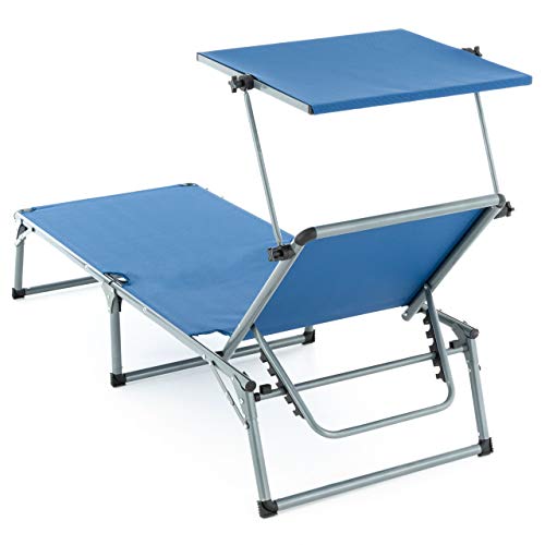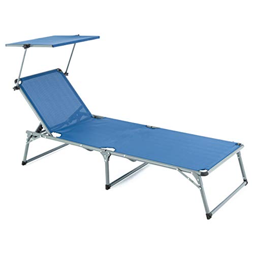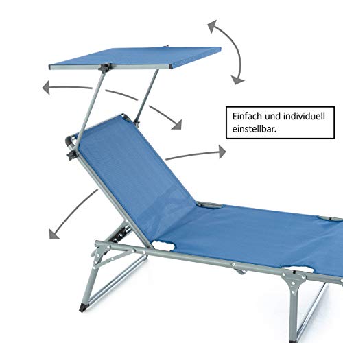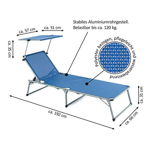 Nexos Sonnenliege XXL Sonnendach 192x66x31 cm Alu Campingliege klappbar (blau)