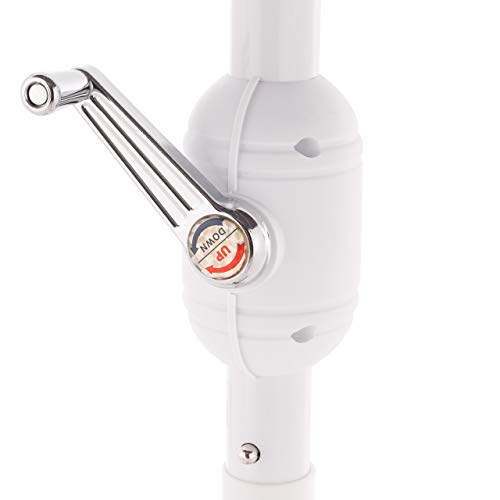 Der 2-teilige Schirmstock und das Gestänge sind alle robustem, weiß lackiertem Stahl.