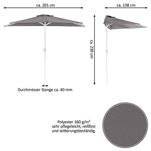 Nexos Trading Sonnenschirm Anthrazit halbrund Ø 2,65 x 1,38 m Wandschirm Balkon-Schirm mit Kurbel Polyester 160 g/m² Sonnenschutz