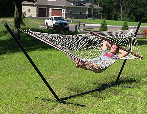 Wo hängen sie es? An den Bäumen im Garten oder auf einer Unterstützung auf Ihrer Terrasse. Wo jederzeit Sie sich entspannen möchten, wird diese Hängematte den Ort in eine Oase des Glücks drehen.