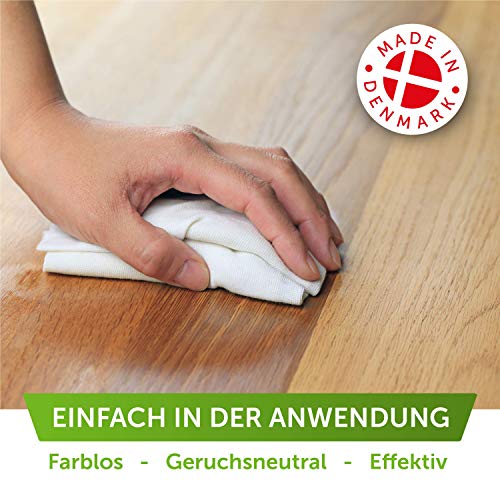 IMPRÄGNIERT UND SCHÜTZT – Egal ob Einrichtung, Treppen oder Fußböden – unser Möbel-Öl ist unbestimmt einsetzbar für alle vorbehandelten Holzoberflächen und schützt intensiv vor Austrocknung und Nässe. Ein natürlicher und atmungsaktiver Oberflächenschutz ist garantiert!