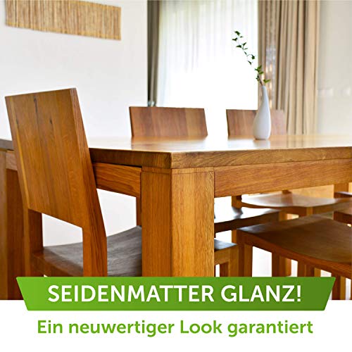 REINIGT UND PFLEGT – Unser Möbelöl eignet sich ideal zur regelmäßigen Reinigung und Pflege sämtlicher Möbel im Innenbereich. Teak, Walnuss, Eiche, ganz egal welche Holzart, mit unserem Produkt ist sichergestellt, dass Ihre wertvollen Möbel strahlen wie am ersten Tag!