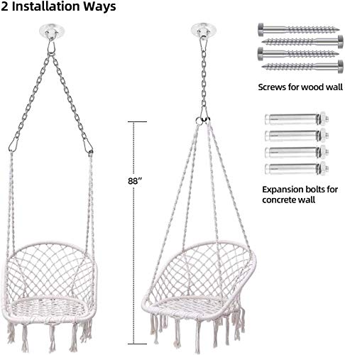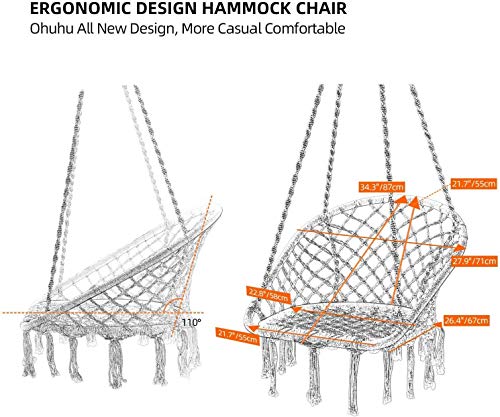 ✅ SAFE & STURDY: Der Ohuhu Hängesessel ist ebenso robust wie schön. Die dicken Baumwollseile und die hochwertige Eisenkette sind so phantastisch wie womöglich und stützen bis zu 120 kg Gewicht. Der mitgelieferte Hängebeschlagsatz ist für Betondecke & Holzdecke sinnvoll.