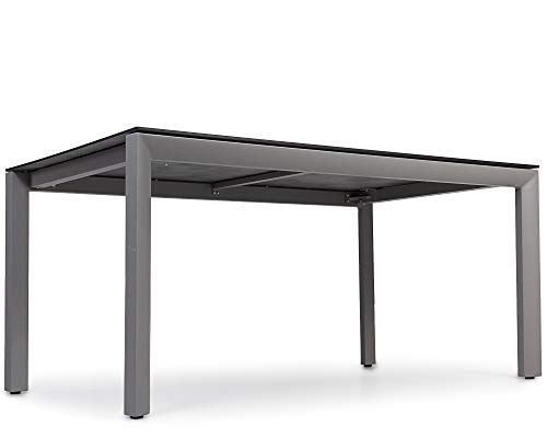 Grundfläche ca. 1.52 m² – Maße ca. 160 x 95 x 74.5 (H) cm – Gewicht dessen ungeachtet ca. 43 kg – Farbe: Alu-Gestell grau / Tischplatte anthrazit