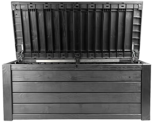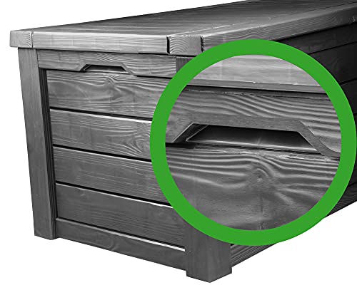 Die Kissenbox Westwood bietet die perfekte Aufbewahrungsmöglichkeit für die Hochlehnkissen Ihrer Gartenmöbel. Sie ist aus strapazierfähigem und pflegeleichtem Kunststoff hergestellt und schützt Ihre Kissen vor Feuchtigkeit und Ausbleichen. Die Kissenbox bietet 568 Liter Stauraum. Mit den Maßen 154 x 72 x 64 (H) cm hat sie die ideale Größe, um sechs Hochlehnkissen Platz zu bieten. Somit ist diese Allzweckbox ein unverzichtbarer Helfer im Garten und auf der Terrasse. Hier hinterlegen Ihre Sitzkissen geschützt und stabil. Mit dem geringen Gewicht von wohl 22 kg ist die Kissenbox Westwood leicht zu transportieren und somit anpassungsfähig einsetzbar. Der Deckel ist mittels eines Vorhängeschlosses (nicht enthalten) selbstverständlich abschließbar (Vorhängeschloss nicht enthalten). Beim Öffnen helfen Ihnen die verbauten Gasdruckfedern. Der Deckel lässt sich freilich spielend öffnen und bleibt geöffnet, ohne dass Sie ihn halten müssen. Mit der bis zu 350 kg belastbaren Sitzfläche ist die Kissenbox auch als Sitzplatz für bis zu 2 Erwachsenen nach Maß. Die Kissenbox Westwood ist der perfekte Partner für Ihre Terrasse In der Kissenbox Westwood lassen sich mühelos sechs Hochlehnkissen verstauen, die so vor Feuchtigkeit stabil geschützt sind. Der Boden dieser Allzweckbox ist mit bis zu 50 kg leistungsfähig und schützt vor Bodennässe. Durch hochwertiges Polypropylen ist diese Allzweckbox wetterbeständig und UV stabil. Diese Gartenbox lässt sich schnell und einfach mit einem Neutralreiniger säubern. Die Kissenbox Westwood ist ein praktischer Aufbewahrungsort, nicht wohl für Stuhlkissen, sondern auch für viele andere Dinge. Sie ist robust und pflegeleicht und somit anpassungsfähig einsetzbar. Beispielsweise können Sie auch Werkzeug oder andere Gerätschaften in der Kissenbox Brightwood hinterlegen. Stauraum kann man demnach nicht genug haben und auch im Garten und auf der Terrasse absinken wieder und wieder Gegenstände an, die man gerne stabil verstauen möchte. Die Kissenbox Westwood ist eine anpassungsfähig einsetzbare Gart
