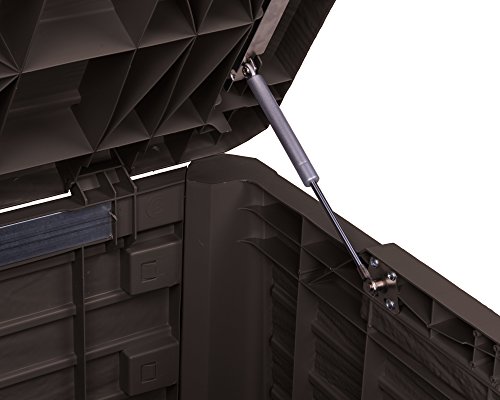 Nicht handkehrum das Innere der Box kann genutzt werden. Zum Ausruhen und Entspannen oder für den großen Bekanntenkreis bietet die Florida Box schöne Sitzgelegenheiten für zwei Personen. Passende Auflagen können Sie in der Box aufbewahren. Der Deckel hält bis zu 360 kg. Die lediglich ca. 20 kg schwere Gartenbox können sie an den praktischen Griffmulden gut abstützen, und der Deckel geht dank der Gasdruckfedern ganz leicht auf und bleibt dann von allein aper stehen.