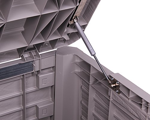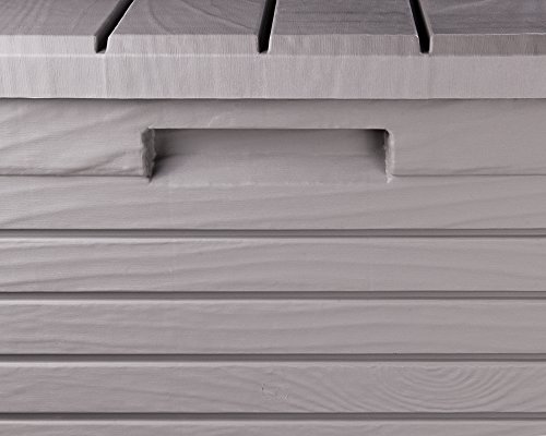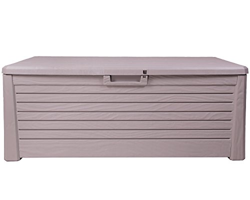 Diese Kissenbox bietet mit den Außenmaßen von ca. 147 x 71 x 63 (H) cm (innen ca. 138 x 62 x 55 (H) cm) ausreichend Platz und verfügt über 550 Liter Stauraum! Darin können Sie genügend Hochlehnerkissen für Ihre Gartenmöbel aufbewahren. Im Unterschied dazu auch ganze Sortimente an Blumentöpfen und Gießkannen können in der Gartenbox gelagert werden.