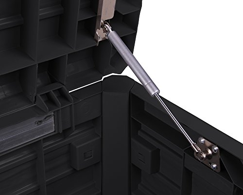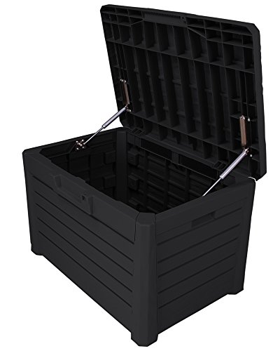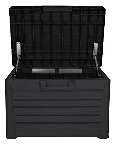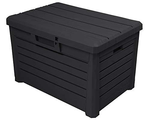 Mit der Kissenbox und Sitztruhe Florida erwerben Sie zum Top-Zoll ein vielseitiges Möbelstück. Genau das Richtige für Sie, wenn Sie ihre Sitzkissen oder Werkzeuge für den Garten einfach und unkompliziert in der Nähe hinterlegen wollen. Die Gartenbox in grau passt überall hin. Mit den Außenmaßen von ca. 73 x 50 x 46 cm (innen ca. 64 x 39,5 x 41 (H) cm) bietet sie 120 Liter Stauraum. Darin können einige Kissen oder Werkzeuge Platz finden (Belastbarkeit des Bodens bis zu 60 kg). Auf den Deckel kann sich ebenfalls eine Person niederlassen, da die Box sehr erschütterungsfest ist. So haben Sie im Garten immer einen Sitzplatz in Reserve, falls mal mehr Besuch kommt als erwartet. Die Kissenbox ist aus strapazierfähigem und pflegeleichtem Kunststoff hergestellt und deshalb UV-beständig, sowie gegenüber Spritzwasser und Temperaturschwankungen resistent. Die Flugmaschine ist also sowohl drinnen, als auch draußen sehr gut aufgehoben. Auch Bodennässe kann dem Inhalt nichts anhaben. Ihre Werrtgegenstände können Sie mit einem Vorhängeschloss sichern (nicht im Zubehör enthalten) – passende Ösen sind elegant in Box und Deckel integriert. Der Deckel geht dabei ganz leicht auf und bleibt dann von allein oben. Die adaptiv einsetzbare Auflagenbox wiegt dennoch 9 kg und kann leicht umgestellt werden. Die praktische Kissenbox Florida hat sie überzeugt? Dann abonnieren Sie sie am besten gleich online hier bei uns und wir beordern sie Ihnen nach Hause. Bei uns im Online-Shop finden Sie auch passendes Zubehör wie weitere Gartenmöbel und Reinigungsmittel für die Truhe – natürlich zum besten Zoll! Alle Maßangaben sind Circa Angaben und beziehen sich auf maximale Außenmaße des Artikels. Das Versandgewicht beruht ebenfalls auf Circa Angaben. Sollten Sie genauere Angaben benötigen, wenden Sie sich bitte an unseren Support.